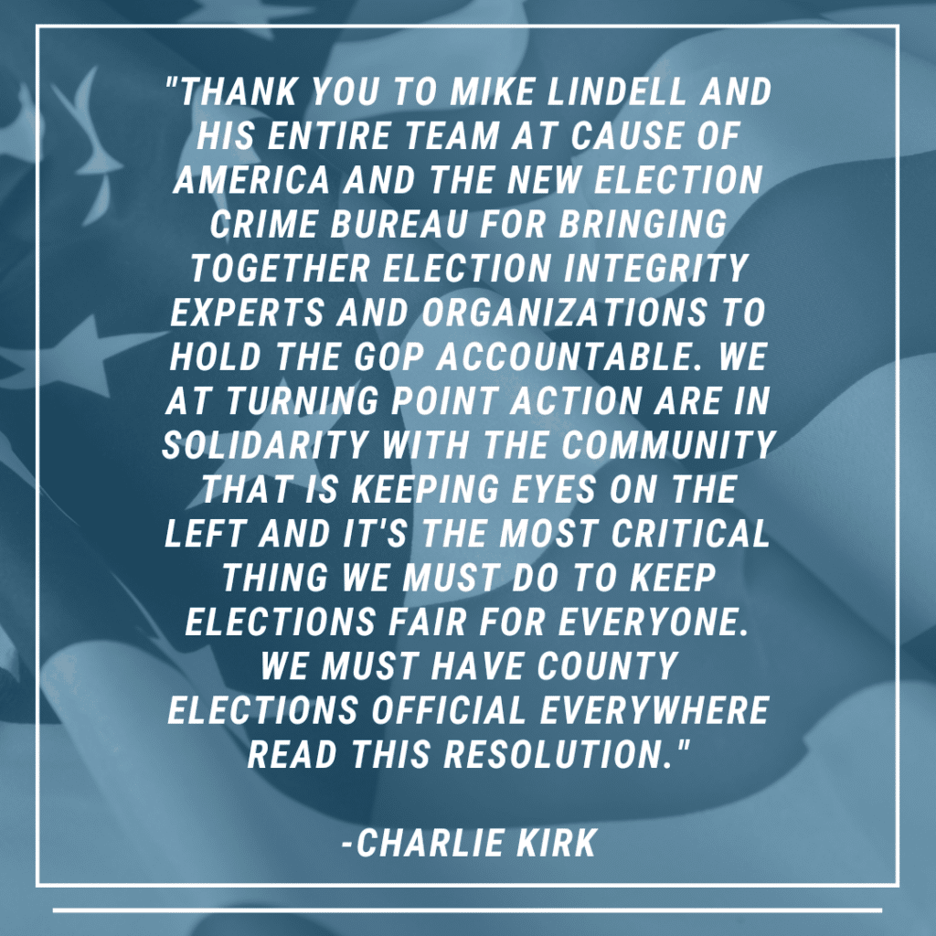 “In order for our nation, the United States of America, to remain a free nation, America requires a fair election system. Mike Lindell, through his courageous efforts using the Election Crime Bureau and bringing together millions of patriots to stand for free and fair elections, has accomplished that and more.